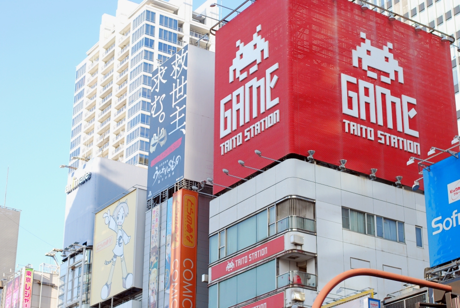 Por las principales calles hay edificios enteros de máquinas recreativas de Sega, cada una de las plantas dedicado a un tipo de máquina diferente, de éste estilo también es el Taito Center. Otro edificio singular es el de Super Potato, donde se venden sobre todo videojuegos y videoconsolas retro. Otros están dedicados a los videojuegos más modernos y a la electrónica, como en el caso de Sofmap.